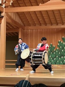 ピカピカに磨かれた舞台には、椅子を置くにも布を敷くなど、所作の一つひとつに敬意が込められていて、出演者の皆さんも足袋を履いて登壇していました。